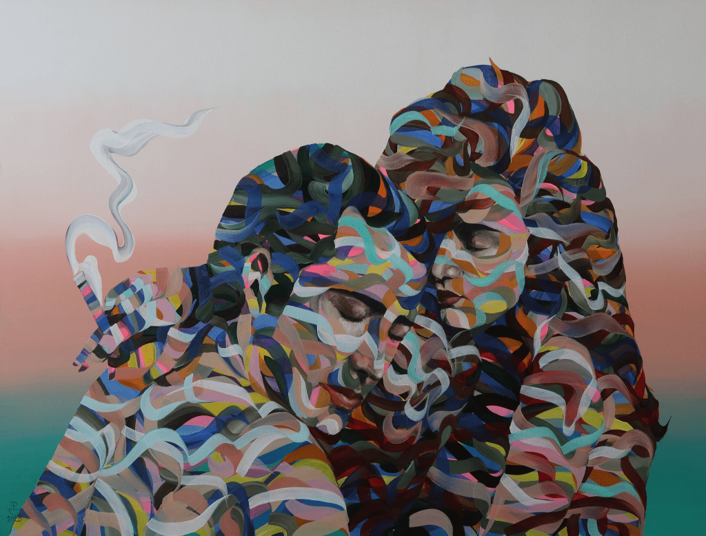 Na aukcji Art in Hous znajdziecie mój obraz , który od razu przyciąga uwagę – „Cine Stories, Dzikość serca” z 2023 roku.